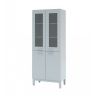 - шкаф с корпусом из стали или ЛДСП (на выбор), верхние дверки – стекло;